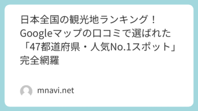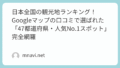 ライフ 日本全国の観光地ランキング!Googleマップの口コミで選ばれた「47都道府県・人気No.1スポット」完全網羅 「次の旅行、どこに行こう?」 そう迷っている方に朗報です。2025年7月、Google マップがサービス開始20周年を記念して、47都道府県ごとの「人気の場所ランキング」を発表しました。このランキング... 2025.12.03 ライフ