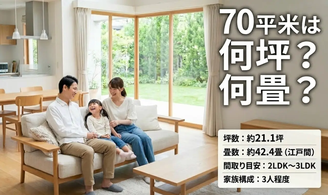 70平米という広さは、坪数にして約21坪、畳数にして約42畳。