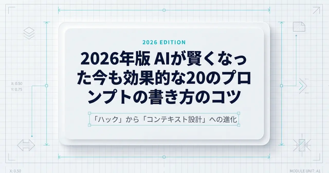 プロンプト技術は「AIに賢く命令する技術」から「AIと協働するための情報設計の技術」へと変化しました。AIが何を知っていて何を知らないか——その境界線を理解することが、2026年以降の生成AI活用の核心です。