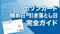 ※店舗からカード会社へ売上データが到着するタイミングによっては、締め日ギリギリのお買い物が当月分として計上されず、翌月以降の請求にズレ込む可能性があります。